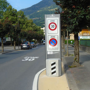 Bornes métalliques en acier zingué, en acier zingué peint, ou en inox. Avec bandes réfléchissantes, rabattables, avec serrure ou autres options.